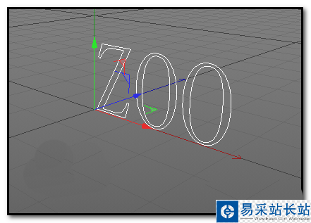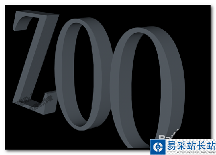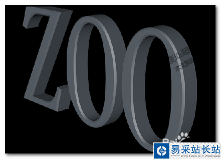 4、“ZOO”擠壓出厚度了,我們滾動(dòng)鼠標(biāo)滾輪,把視圖拉近,看下文字。可以看到文字邊緣銳利。
