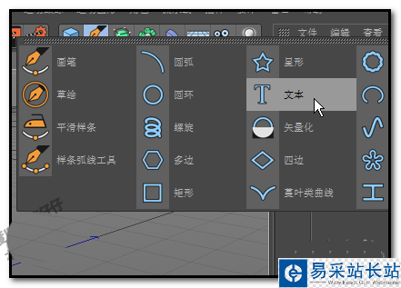1、打開C4D軟件操作界面后,在菜單欄下方的圖標(biāo)欄里點(diǎn)開畫筆圖標(biāo),彈出的面板中選擇