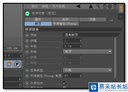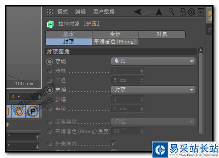 6、對(duì)象 面板,選擇“擠壓”,在下方屬性面板這里,點(diǎn)開“封頂”選項(xiàng);