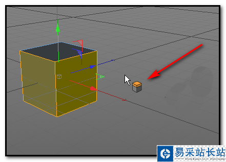 4、鼠標(biāo)點(diǎn)住立方體外圍空位置,點(diǎn)住不放手向右邊拖;這時(shí),兩個(gè)面同時(shí)給擠出兩個(gè)立方體。