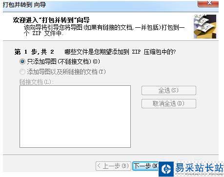 2、打包并轉(zhuǎn)到向?qū)?dòng),選擇要添加到ZIP壓縮包中的文件;