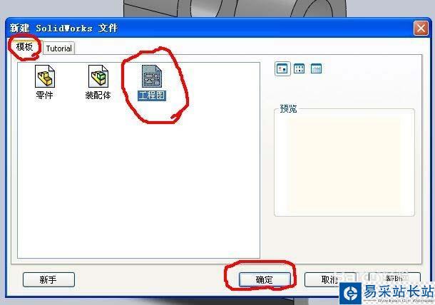 2、選擇文件---新建選項,點開。彈出新建SolidWorks文件,此處選擇模板--工程圖,然后點擊確定。