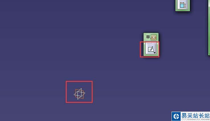 3、在零件設計界面選中一個平面,并單擊“草圖”按鈕,進入草圖設計。