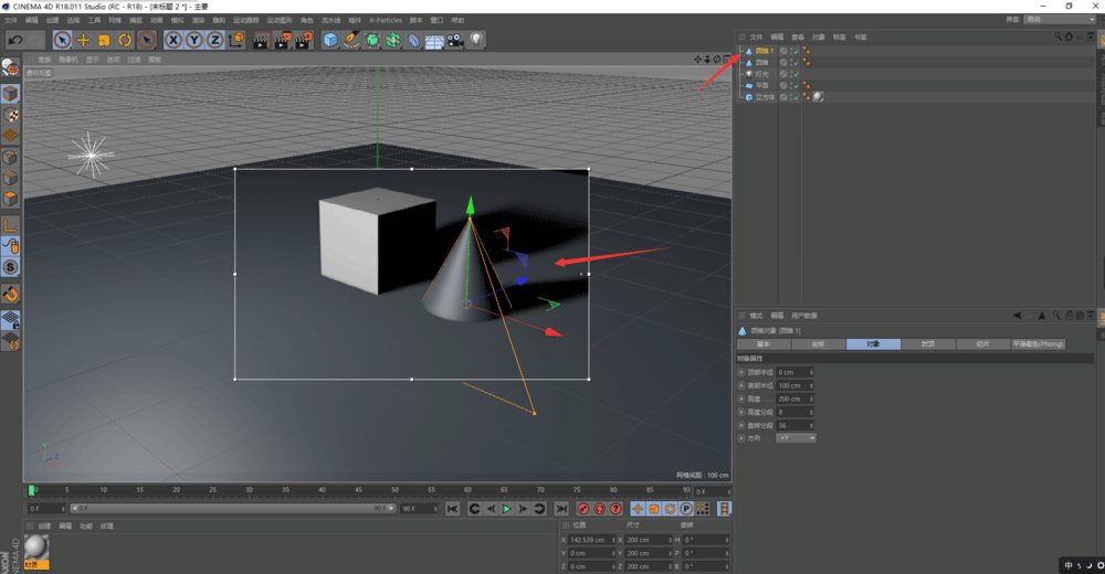 5、添加一個(gè)圓錐對(duì)象,隨時(shí)更換添加渲染對(duì)象;