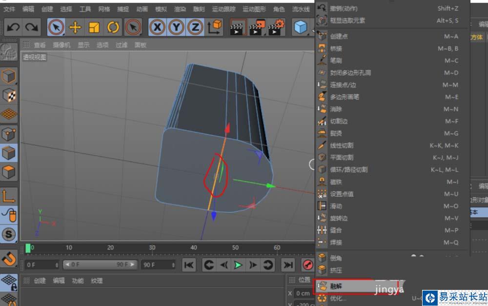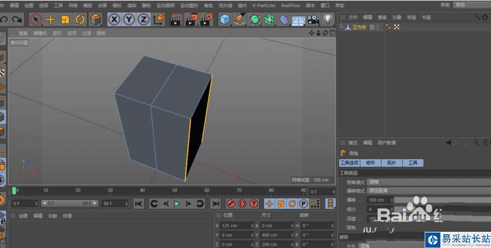 2、用環狀選擇(UB),為立方體的一組邊加一條中間線。