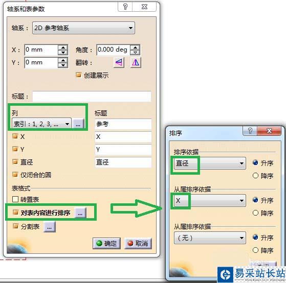 4、這時會出現(xiàn)“軸系和表參數(shù)”對話框。按如圖所示設置“列”中的“索引1,2,3”,以及“排序”中的“排序依據(jù)”。