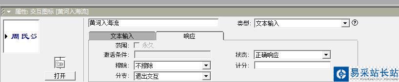 4、在交互圖標(biāo)的右面添加一個群組圖標(biāo),將交互類型設(shè)置為文本輸入,并將其命名為【黃河入海流】,挨著再拖一個,命名為空。