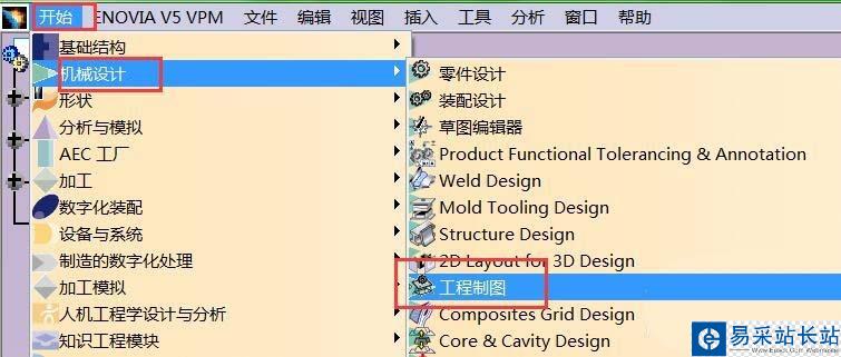 2、接著介紹根據該三維模型,生成工程制圖。通過菜單路徑:開始>機械設計>工程制圖,進行新建圖紙。