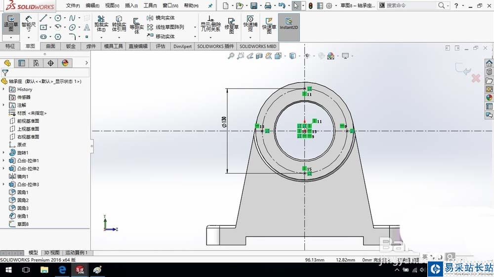 1、正視于如圖所示的端面,繪制草圖。繪制具有如圖所示幾何關系的草圖。退出草圖。