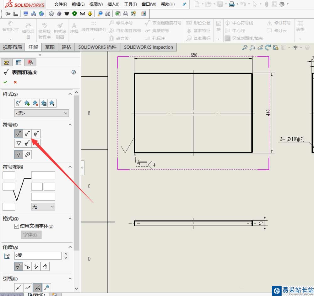 SolidWorks圖紙中的粗糙度的大小一般是默認(rèn)的,在一些位置上標(biāo)注往往會不合適,想要調(diào)整大小,該怎么調(diào)整呢??下面我們就來看看詳細(xì)的教程。