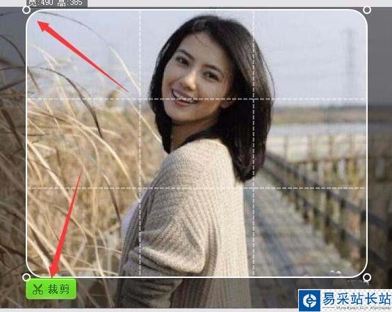 3、這時可以看到在照片上出現了剪裁的邊框,拖動邊框到合適的大小即可。