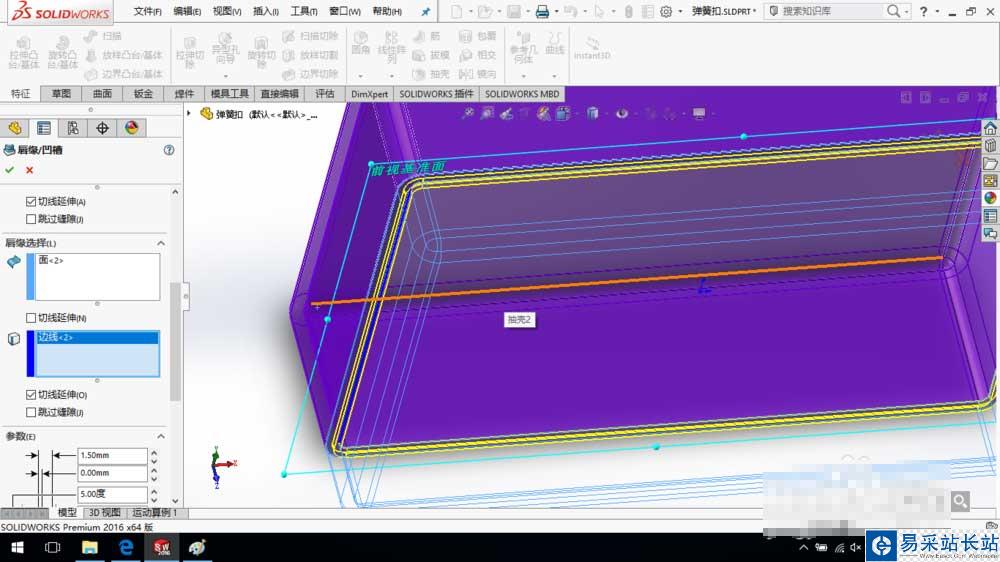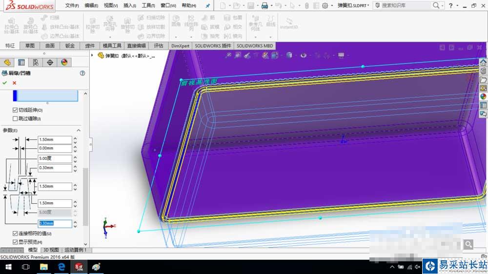 SolidWorks2016創(chuàng)建唇緣凹槽教程: