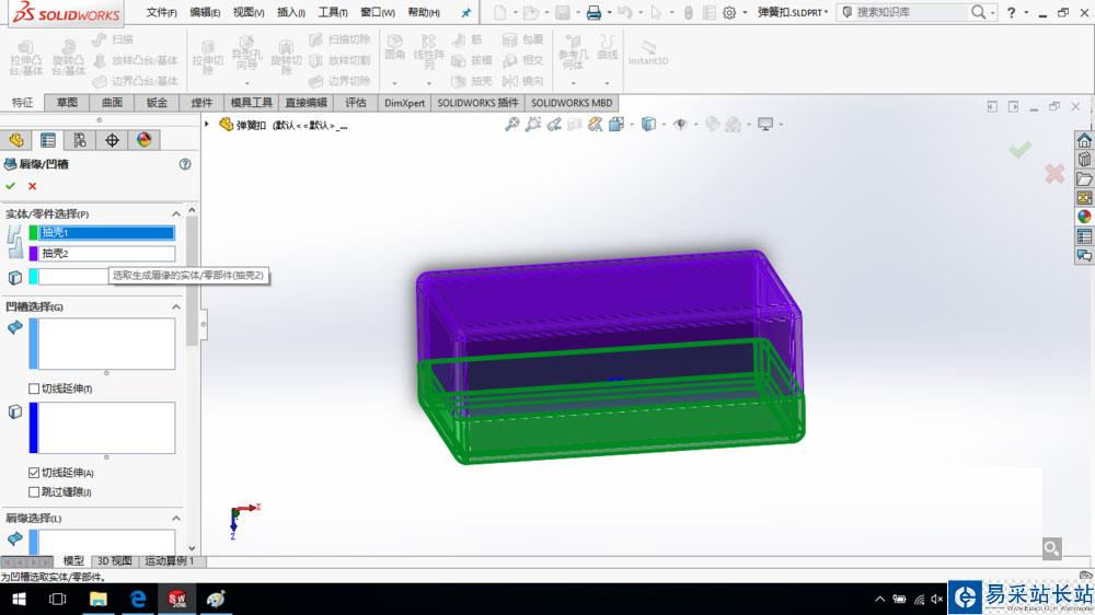 3、“生成凹槽的實體”和“生成唇緣的實體”分別選擇抽殼1和抽殼2。