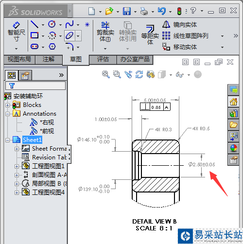 2、在知道了圓度公差的定義后,我們就打開solidworks工程圖,準(zhǔn)備標(biāo)注圓度公差,如圖,我要在這個尺寸上標(biāo)注圓度公差,