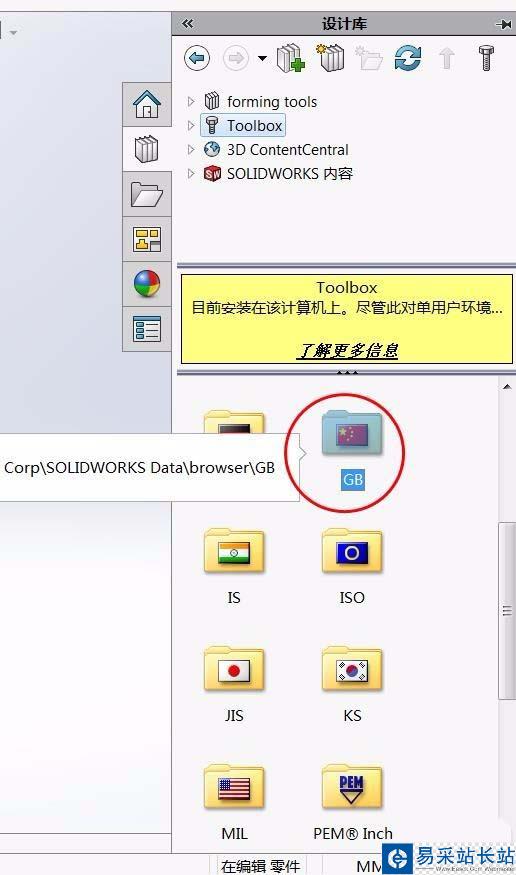 1、打開solidworks最右側的書本的形狀,選擇toolboax,在下冊選擇現在插入