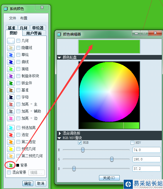 4、若想采用單色背景,則需要先取消“混合背景”前面的√,如下圖,然后點擊“背景”的標志,在彈出的“顏色編輯器”中選擇合適的顏色就可。