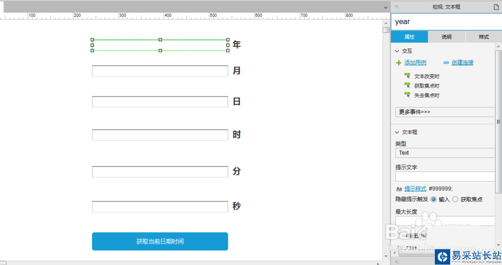 3、分別選中年月日時分秒輸入框,分別設置名稱為year、month、day、hour、minute和second,如下圖所示: