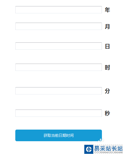 2、六個輸入框后依此添加三級標題,分別改為年、月、日、時、分和秒,按鈕的內容改為“獲取當前日期時間”,如下圖所示: