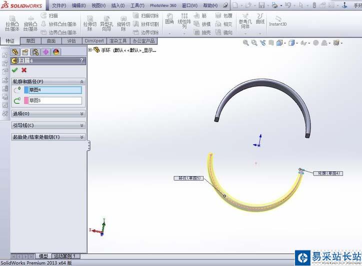 1、創建草圖,添加掃描特征
