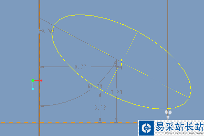 2、在草繪區適當位置單擊左鍵,初定橢圓的中心,然后拖動鼠標初定長軸(或短軸)的端點,最后拖動鼠標初定另一個方向,點擊中鍵進行確認并退出,見下圖。