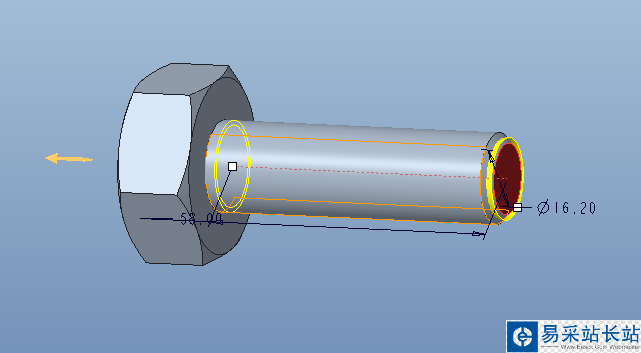 5、接著選擇螺紋的起始面,選擇螺栓的尾部,并定義螺紋的長(zhǎng)度