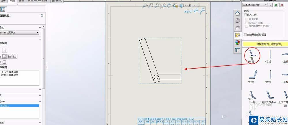 8、回到工程圖中,可以發現工程圖有了一個虛線,這個虛線就是配置為"重合"的位置
