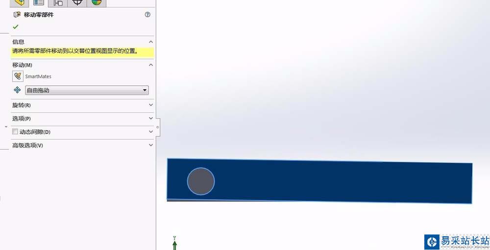 6、這個時候回自動進入到模型圖,在這個配置下拖動模型進行運動到需要的位置,我這里拖動到了重合的位置