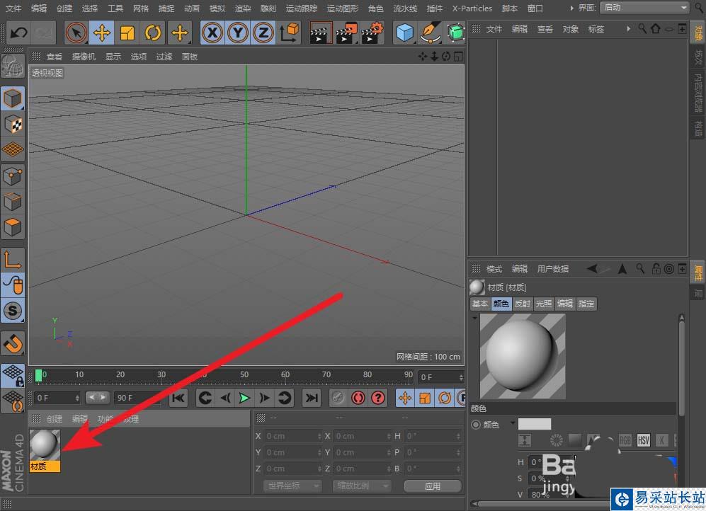 1、打開C4D軟件,雙擊下側(cè)區(qū)域,這個區(qū)域就是材質(zhì)球;