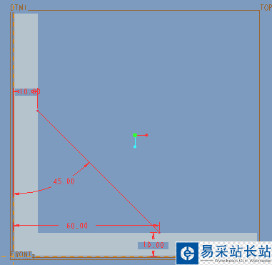 5、此時進入草繪環境,創建如下的一條斜線,點擊√退出草繪界面。