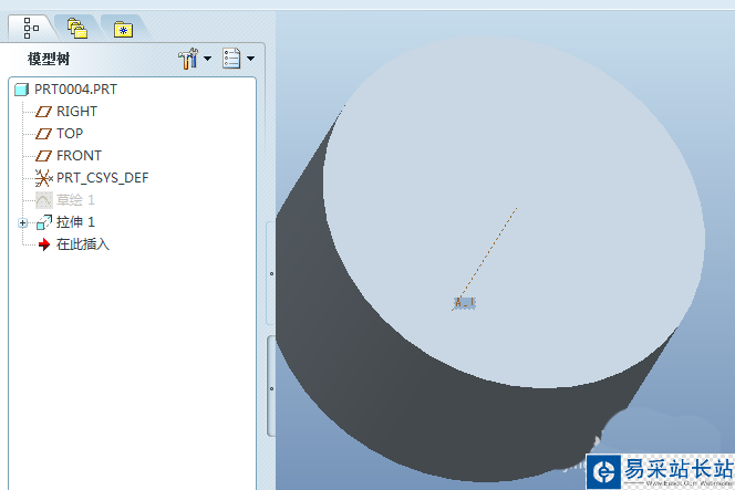1、孔為減材特征,因此需先繪制實體特征,例如先采用拉伸法或旋轉(zhuǎn)法形成如下圓柱。