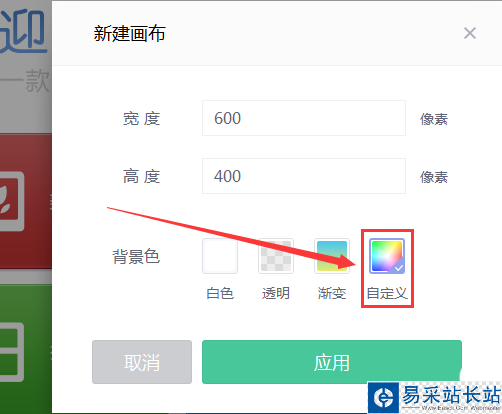 3、這個畫布的是默認的,可以根據進行調整即可,在右選擇【自定顏色】,如圖所示;