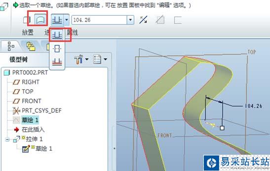 ProE中的曲面或封閉環(huán)進(jìn)行拉伸,可形成曲面或?qū)嶓w,下面我們就來看看實(shí)例教程。