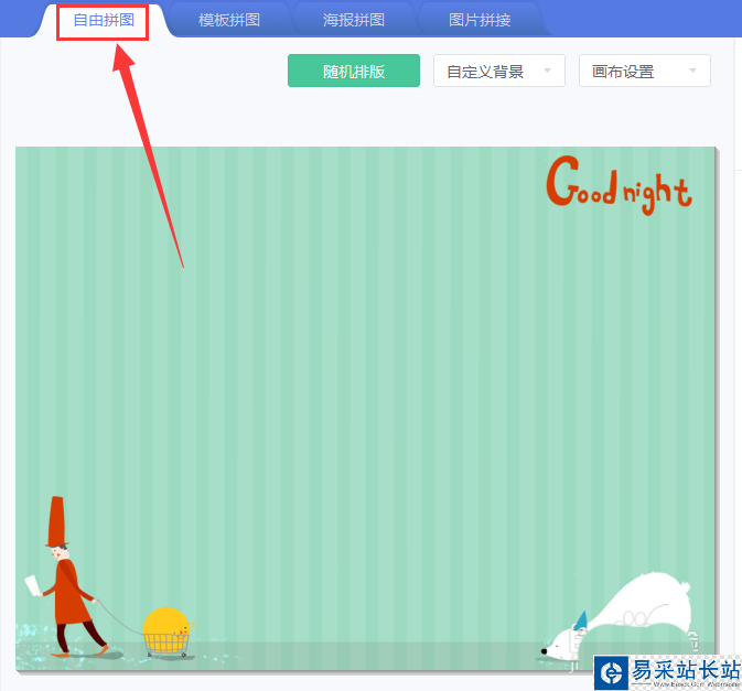 4、在“自由拼圖”的右邊打開“畫布設(shè)置”選擇自定義尺寸,寬1920高500的像素。