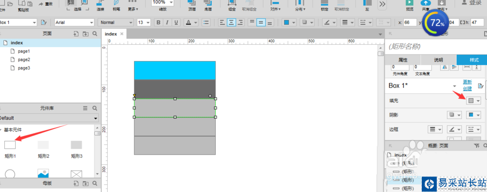 1、我們先放入菜單的相關(guān)元件,這里我使用的是矩形。