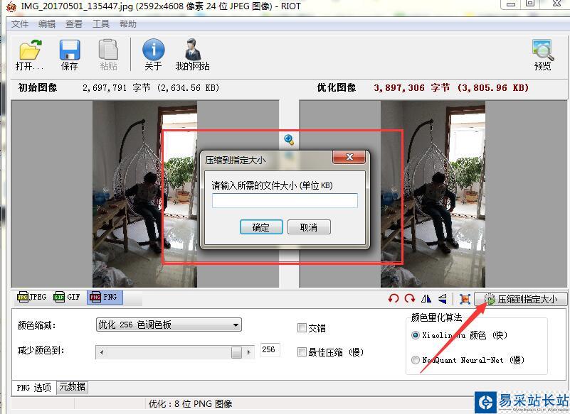 5、單擊PNG,可以手動輸入減少顏色的參數(shù)