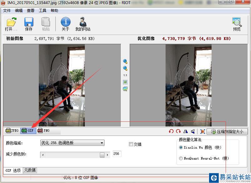 4、單擊GIF,可以設(shè)置顏色縮減、優(yōu)化調(diào)色板