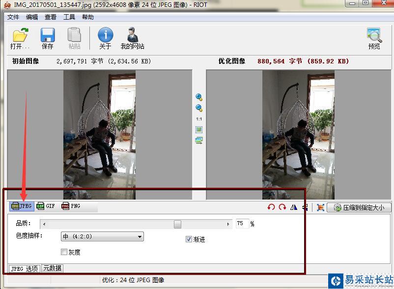 3、點擊JPEG,可以選擇品質(zhì)調(diào)節(jié)、色度抽樣