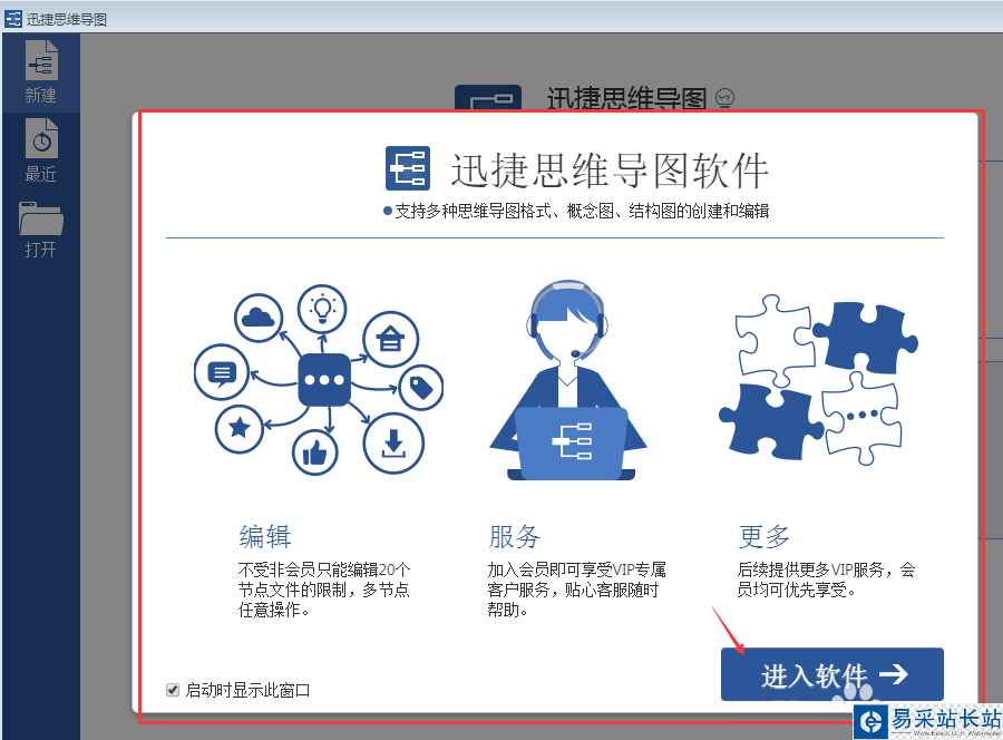1、首先你需要在電腦上安裝一款迅捷思維導圖軟件,安裝好以后打開軟件
