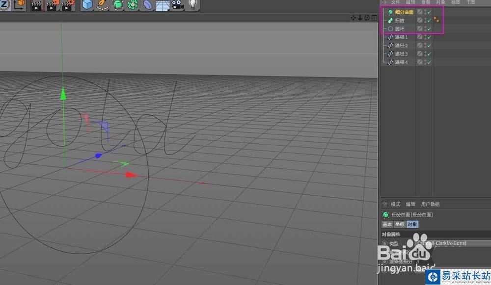 5、新建【細分曲面】【掃描】【圓環】三個對象