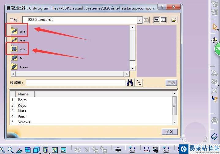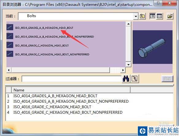 4、此時又會按照不同保準類型,分類螺栓,其螺紋及樣式會不同,如果沒有自己所需標準,找個最類似的,右側可瀏覽樣式。注意下方文字和箭頭處文字,雖然完全一致,如果想選擇某一項,需在上方雙擊,如雙擊箭頭處。