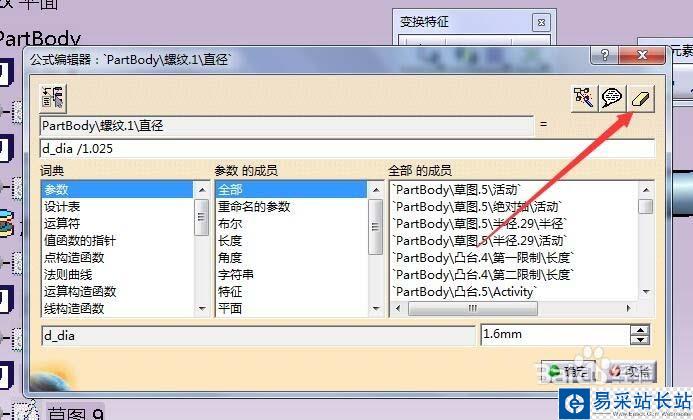 6、然后即相當于新建了一個螺栓零件,但是已經有內容了,接下來研究其實體,如何生成,進行相應修改即可。如這里雙擊箭頭位置,編輯螺紋。