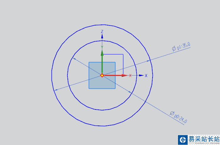 2、以坐標原點為圓心,繪出二個同心圓并修改好直徑參數:35、24.