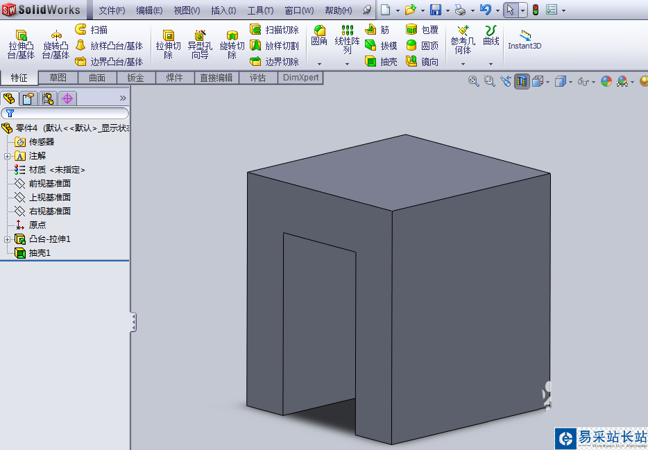1、這里以簡易矩形零件為例。首先,新建一個矩形拉伸體。