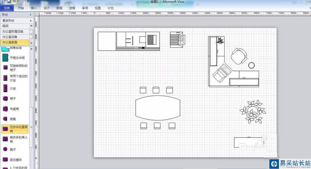 6、最后添加辦公室家具,入會議桌椅、沙發(fā)、文件柜等。