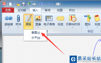 3、進行點擊了插入的菜單中之后,進行選中為 便簽 的選項。