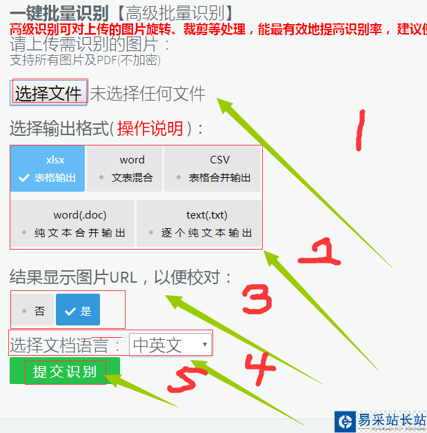 3、根據個人要求,將圖片識別設置完成后。點擊“提交識別”