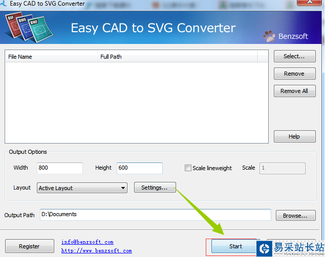 3、最后點(diǎn)擊start按鈕即可,等一下它會(huì)將CAD文件轉(zhuǎn)換成SVG文件的。