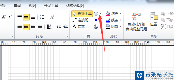 1、首先,當前的visio的文件上,添加幾個一個橢圓圖,進行點擊畫圖工具。