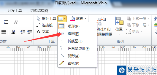 2、點擊了畫圖工具之后,彈出了下拉菜單選中為橢圓的選項。