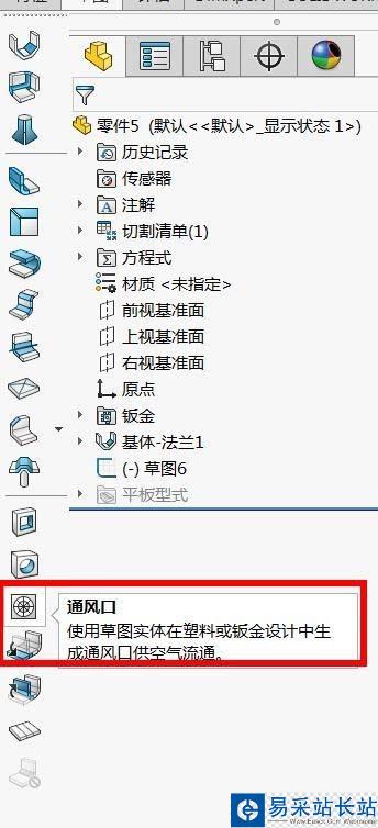 3、在鈑金的工具欄中,找到通風(fēng)口,選擇這個(gè)命令